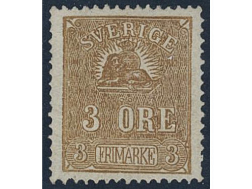 Sweden. Facit 14Aa (★), 3 öre olive-tinged (yellow) brown–olive-tinged orange-brown, type I. One slightly short perf., n.. Läs mer Sweden. Facit 14Aa (★), 3 öre olive-tinged (yellow) brown–olive-tinged orange-brown, type I. One slightly short perf., nevertheless beautiful. Opinion (shade) by O.P. SEK 7500 Visa mindre
