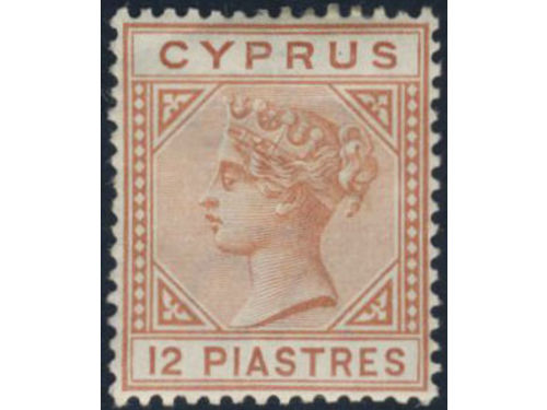 Cyprus. SG 37 ★, 1893 Queen Victoria 12 pi Orange-brown, watermark crown CA. GBP 200 Cyprus. SG 37 ★, 1893 Queen Victoria 12 pi Orange-brown, watermark crown CA. GBP 200 Visa mindre