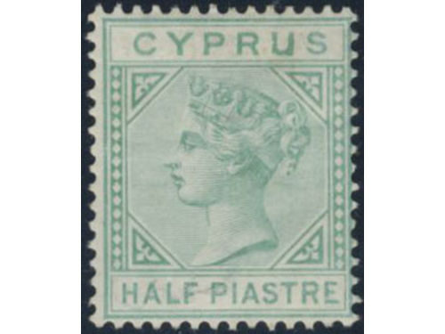 Cyprus. SG 11 ★, 1881 Queen Victoria ½ pia Emerald-Green wmk Crown CC. GBP 200 Cyprus. SG 11 ★, 1881 Queen Victoria ½ pia Emerald-Green wmk Crown CC. GBP 200 Visa mindre