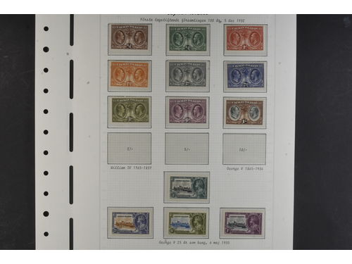 Cayman Islands. Collection ★★/★ 1932–1959 on leaves. 1932 Centenary set to 1 s mh, SJ set um, 1935 KGV set to 2 s mh, 19.. Läs mer Cayman Islands. Collection ★★/★ 1932–1959 on leaves. 1932 Centenary set to 1 s mh, SJ set um, 1935 KGV set to 2 s mh, 1938 KGVI set mh and QEII 1953 set MNH. The entire lot is presented at www.philea.se. Fine quality. (52) Visa mindre