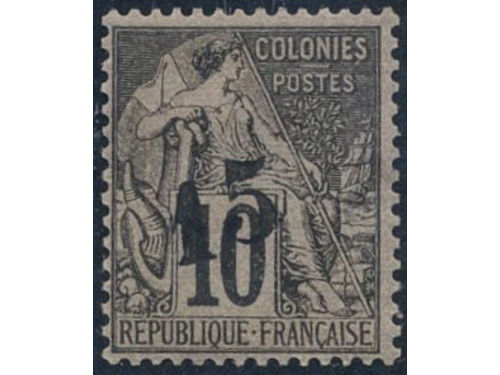 Gabon. Michel 6 ★, French Colonie overprint 15 (c) on 10 c Black on lilac. VF mint hinged, signed. EUR 7000 Gabon. Michel 6 ★, French Colonie overprint 15 (c) on 10 c Black on lilac. VF mint hinged, signed. EUR 7000 Visa mindre
