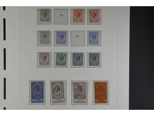 Gibraltar. Collection mostly ★ 1912–1953 on leaves with stamp mounts. KGV–QEII with several £ values. incl. SG 83 *, 84.. Läs mer Gibraltar. Collection mostly ★ 1912–1953 on leaves with stamp mounts. KGV–QEII with several £ values. incl. SG 83 *, 84 ¤, 85 *, 100 *, 107 *, 121–131 *. The entire lot is presented at www.philea.se. Mostly fine quality. (72) Visa mindre