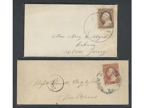 U.S.A. Covers. Two attractive mourning covers, one steamship New Jersey, the other a drop cover seldom seen. U.S.A. Covers. Two attractive mourning covers, one steamship New Jersey, the other a drop cover seldom seen. Visa mindre