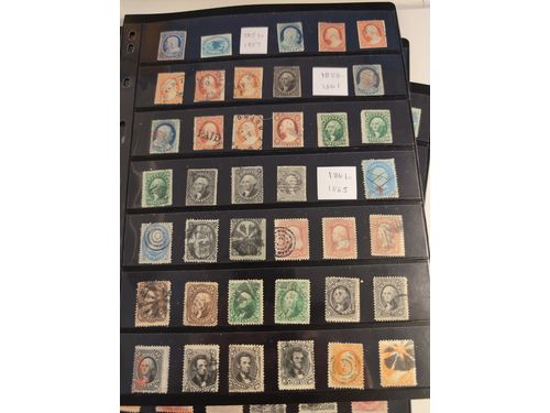 U.S.A. Collection/accumulation mostly used 1851–1930s on visir leaves. With a lot of early stamps (in mixed condition) i.. Läs mer U.S.A. Collection/accumulation mostly used 1851–1930s on visir leaves. With a lot of early stamps (in mixed condition) incl. better several with grill with values up 90c (1870), later issues incl. Colombus and Omaha to 50c, air mails and many back of the book items. Viewing is recommended. Please see a selection of scans at www.philea.se. Mostly good quality. (500–600) Visa mindre