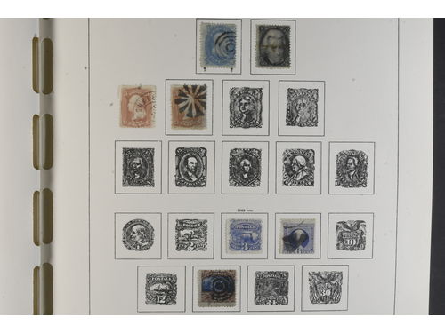 U.S.A. Collection/accumulation used 1857–1990 in two albums. Includes a good representation of early 'president issues'.. Läs mer U.S.A. Collection/accumulation used 1857–1990 in two albums. Includes a good representation of early 'president issues' incl some with grill, many regular stamps with high or unusual denominations, From 1940 very well filled, incl some mini sheets. Also some special issues. Please see a selection of scans at www.philea.se. Mostly fine quality. (>1500) Visa mindre