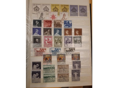Vatican. Collection/accumulation ★★ 1964–1980 in stockbook. Single stamps, sets, series, stamp sheets (both complete and.. Läs mer Vatican. Collection/accumulation ★★ 1964–1980 in stockbook. Single stamps, sets, series, stamp sheets (both complete and parts thereof), blocks of four with and without margins, mini sheets and more. Additionally a stockbook Italy. Please see a selection of scans at www.philea.se. Excellent quality. (>1000) Visa mindre
