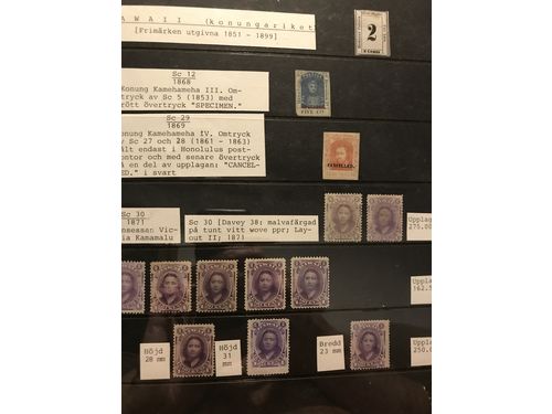 U.S.A., Hawaii. ★/⊙. Specialized collection 1868–99 in visir binder incl. dupl. and nine unused postal stationery items... Läs mer U.S.A., Hawaii. ★/⊙. Specialized collection 1868–99 in visir binder incl. dupl. and nine unused postal stationery items. Also some modern covers, etc. Please see a selection of scans at www.philea.se. (300) Visa mindre