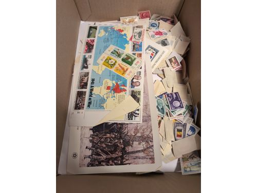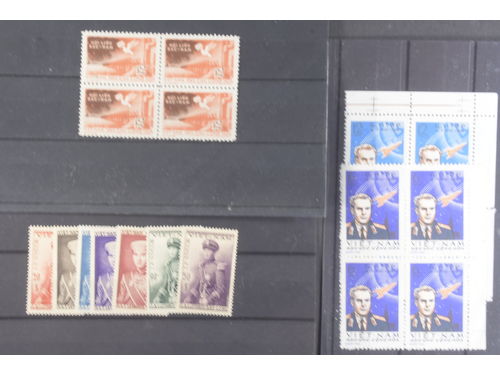 Vietnam. ★★. Very impressive stock, accompanied by some Laos, etc. The main value is in both North and South Vietnam wit.. Läs mer Vietnam. ★★. Very impressive stock, accompanied by some Laos, etc. The main value is in both North and South Vietnam with many 100s of stockcards often with blocks of 4 or strips, housed in a large wooden box, overwhelmingly in complete sets from the 1950s through to the 1980s, all MNH including strong back of the book. All completely uncatalogued but its retail potential will clearly run into 10s of 1000s of euro. There is duplication, however it is often in the better sets including Vietnam space 1961, Red Cross, homage to Ho Chi Minh, back to the 1950s with monarchy sets in qty, etc, etc. This fabulous holding of so many different topicals really must be viewed to be appreciated, an excellent opportunity. Approx. 5 kg. Visa mindre