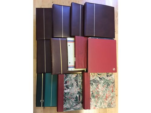 U.S.A. ★★/★/⊙. Accumulation in 13 albums/binders incl. e.g. simplier coll. 1890s–1988 in four SAFE Dual- and one Lindner.. Läs mer U.S.A. ★★/★/⊙. Accumulation in 13 albums/binders incl. e.g. simplier coll. 1890s–1988 in four SAFE Dual- and one Lindner Falzlos albums, ** blocks-of four, booklets, year-sets 1970s–80s, three binders with covers incl. many air mail to Sweden, etc. Approx. 27 kg. Visa mindre