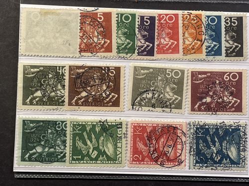 Sweden. Facit 211–25 ★, SET (18) incl. 10 öre cx/cxz and 30 öre dull greenish blue. Somewhat mixed quality. SEK c. 6.500 Sweden. Facit 211–25 ★, SET (18) incl. 10 öre cx/cxz and 30 öre dull greenish blue. Somewhat mixed quality. SEK c. 6.500 Visa mindre