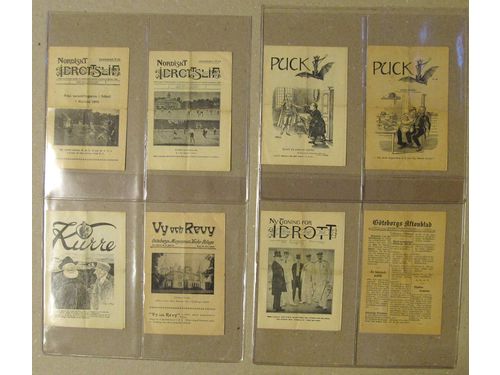 Miscellaneous, Other. Very odd mixture containing a cpl. collection ** Swedish Christmas seals 1904–1980 (1960 onwards in full sheets), accumulation labels and seals (approx. 1500) in stockbook, eightteen early 20th century Swedish miniature newspapers and a Visir-album with 120 Pokemon cards. Some scans are presented at www.philea.se. Visa mindre