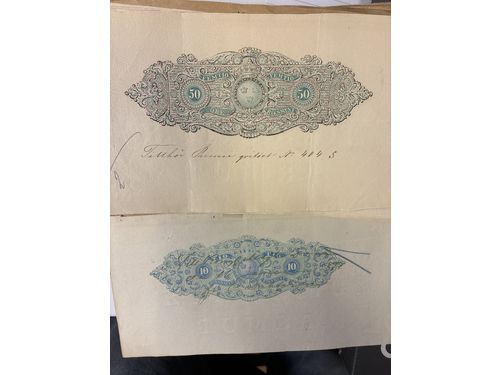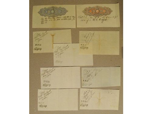 Sweden. Revenues, lot 1811–1873. Nine, whereof four Ygberg Rdr ('R' in Facit) including the 20 Rdr! Some vertical folds.. Läs mer Sweden. Revenues, lot 1811–1873. Nine, whereof four Ygberg Rdr ('R' in Facit) including the 20 Rdr! Some vertical folds but F–VF condition overall. Ten Documentary´s No.1 affixed to four documents incl. 25 and 50 Rdr 1847 F–VF condition. Almost the entire lot is presented at www.philea.se. (19) Visa mindre