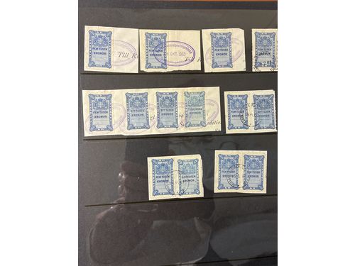 Sweden. Revenues, accumulation 1900s in visir album. Revenue values up to 5000. On pieces from documents. Please see a s.. Läs mer Sweden. Revenues, accumulation 1900s in visir album. Revenue values up to 5000. On pieces from documents. Please see a selection of scans at www.philea.se. Mostly good quality. (ca. 400) Visa mindre