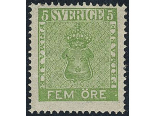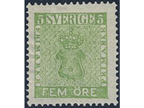 Sweden. Facit 7f ★, 5 öre light yellow green. Very fine copy. Sweden. Facit 7f ★, 5 öre light yellow green. Very fine copy. Visa mindre