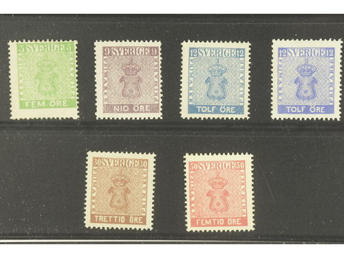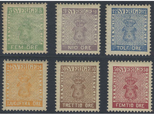 Sweden. Facit 7–12F ★★/★, 5–12 öre, SET (6) (no 24 öre, but one extra 12 öre) of 'PARIS FORGERIES'. Sweden. Facit 7–12F ★★/★, 5–12 öre, SET (6) (no 24 öre, but one extra 12 öre) of 'PARIS FORGERIES'. Visa mindre