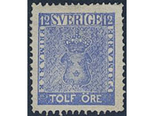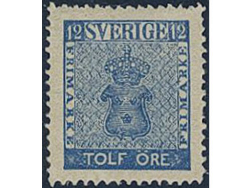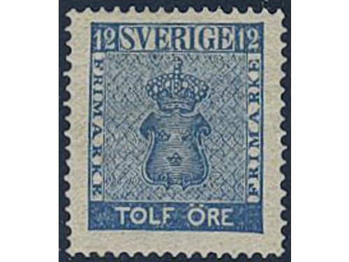 Sweden. Facit 9h1 ★, 12 öre bright ultramarine. One weakly bent corner perf. Rich colour. Opinion (shade) by O.P. SEK 3600 Sweden. Facit 9h1 ★, 12 öre bright ultramarine. One weakly bent corner perf. Rich colour. Opinion (shade) by O.P. SEK 3600 Visa mindre