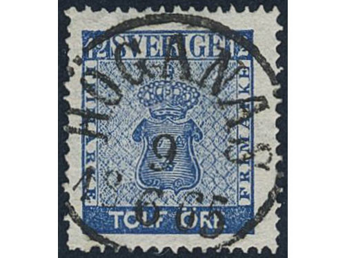 Sweden. Facit 9l used, 12 öre blue, dense background. Superb cancellation HEDEMORA 12.2.1863. Allegedly, position 73 plate 3. Sweden. Facit 9l used, 12 öre blue, dense background. Superb cancellation HEDEMORA 12.2.1863. Allegedly, position 73 plate 3. Visa mindre