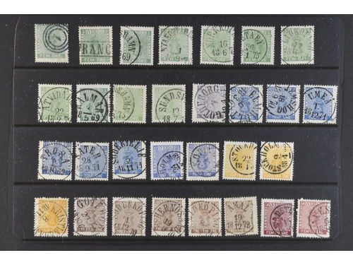 Sweden. Facit 7–12 used, Collection Coat-of-Arms, öre on stockcards. 30 stamps in shades incl. 9 öre and some with nice canc. Sweden. Facit 7–12 used, Collection Coat-of-Arms, öre on stockcards. 30 stamps in shades incl. 9 öre and some with nice canc. Visa mindre
