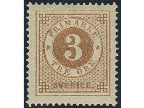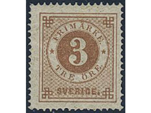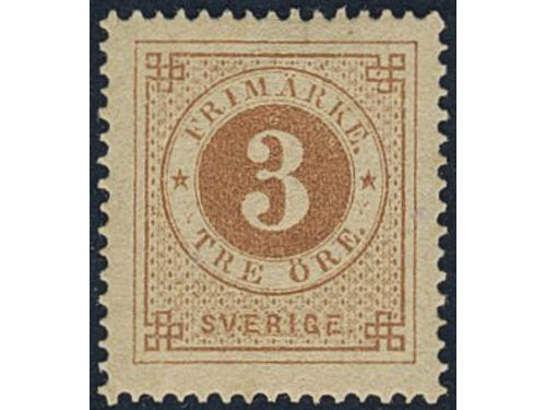 Sweden. Facit 17a ★, 3 öre greyish yellow-brown. Very fine–superb. Sweden. Facit 17a ★, 3 öre greyish yellow-brown. Very fine–superb. Visa mindre