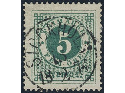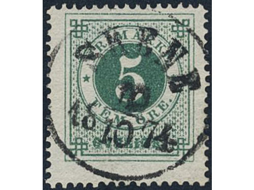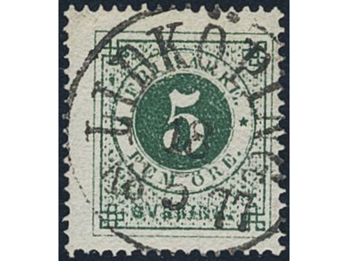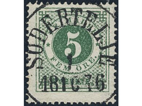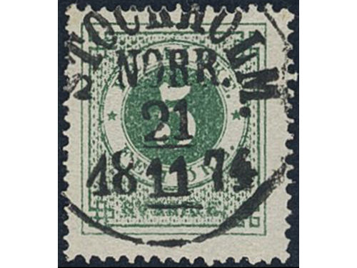 Sweden. Facit 19f used, 5 öre dark green, grainy print. Superb–EXCELLENT cancellation STOCKHOLM NORR 21.11.1874. Signed by O.P. Sweden. Facit 19f used, 5 öre dark green, grainy print. Superb–EXCELLENT cancellation STOCKHOLM NORR 21.11.1874. Signed by O.P. Visa mindre