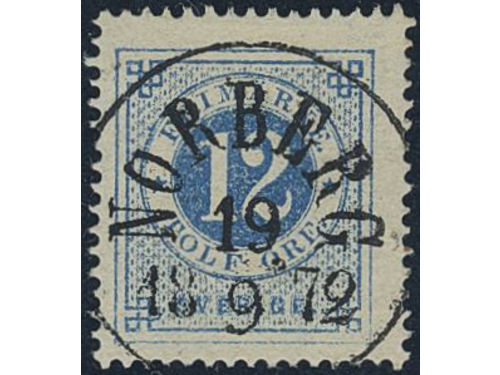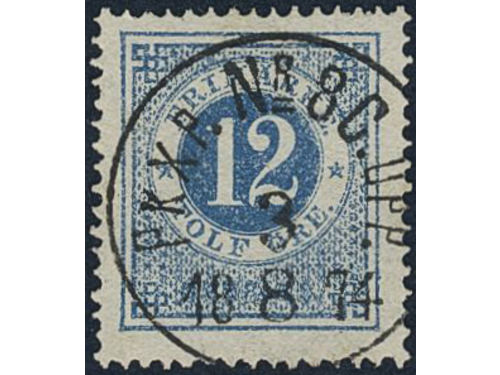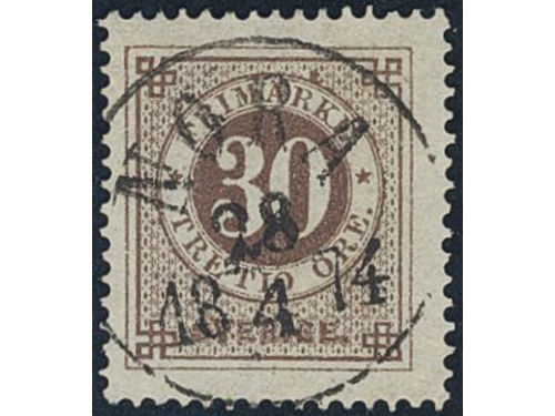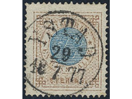Sweden. Facit 25f used, 30 öre blackish brown, smooth or granulous print. Superb cancellation NORRKÖPING 2.12.1874. One weakly bent corner perf. Sweden. Facit 25f used, 30 öre blackish brown, smooth or granulous print. Superb cancellation NORRKÖPING 2.12.1874. One weakly bent corner perf. Visa mindre