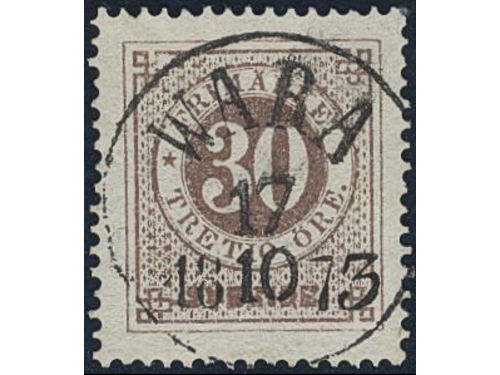 Sweden. Facit 25d2 used, 30 öre orange-brown. EXCELLENT cancellation WARA 17.10.1873. One short perf. Sweden. Facit 25d2 used, 30 öre orange-brown. EXCELLENT cancellation WARA 17.10.1873. One short perf. Visa mindre