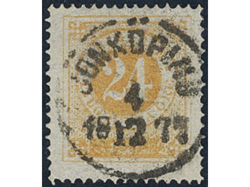 Sweden. Facit 24g used, 24 öre dull orange-dull yellowish orange. EXCELLENT cancellation JÖNKÖPING 4.12.1877. Signed by O.P. Sweden. Facit 24g used, 24 öre dull orange-dull yellowish orange. EXCELLENT cancellation JÖNKÖPING 4.12.1877. Signed by O.P. Visa mindre