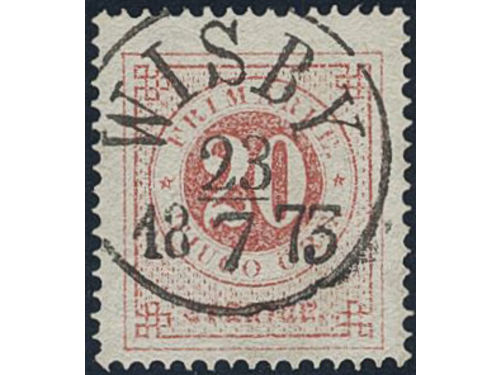 Sweden. Facit 22d used, 20 öre pale red. Superb cancellation WISBY 23.7.1873. Sweden. Facit 22d used, 20 öre pale red. Superb cancellation WISBY 23.7.1873. Visa mindre