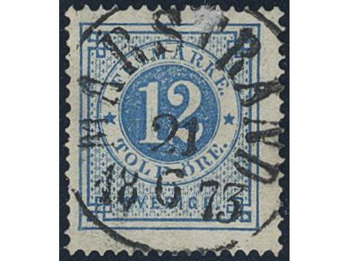 Sweden. Facit 19c used, 5 öre emerald green. Superb cancellation STOCKHOLM 13.2.1874. One somewhat short perf. Signed by O.P. Sweden. Facit 19c used, 5 öre emerald green. Superb cancellation STOCKHOLM 13.2.1874. One somewhat short perf. Signed by O.P. Visa mindre