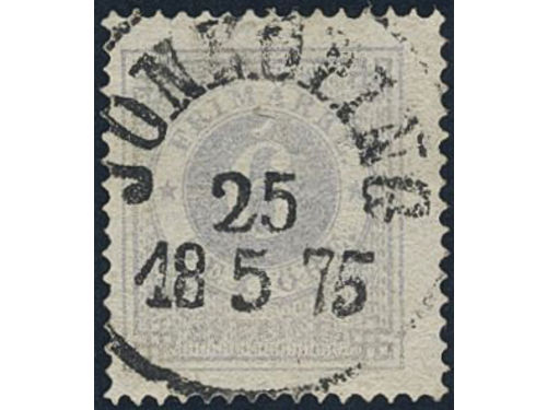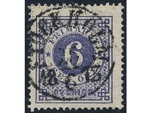 Sweden. Facit 20b used, 6 öre ultramarine-violet on yellowish paper. Superb cancellation STOCKHOLM 25.6.1873. Signed by O.P. Sweden. Facit 20b used, 6 öre ultramarine-violet on yellowish paper. Superb cancellation STOCKHOLM 25.6.1873. Signed by O.P. Visa mindre