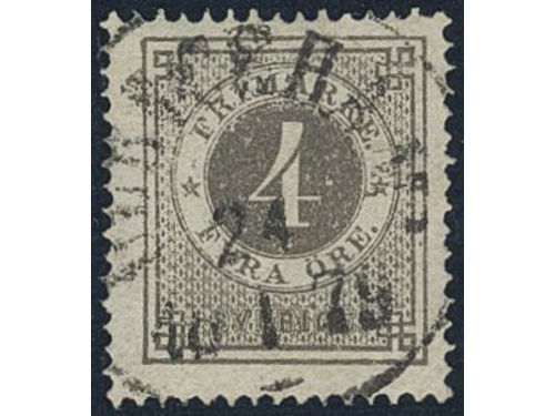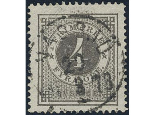 Sweden. Facit 18a used, 4 öre dark grey. Superb cancellation ULRICEHAMN 24.1.1879. Sweden. Facit 18a used, 4 öre dark grey. Superb cancellation ULRICEHAMN 24.1.1879. Visa mindre