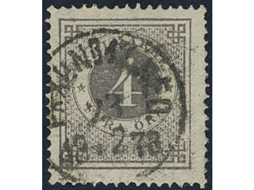 Sweden. Facit 18a used, 4 öre dark grey. Superb cancellation PKXP Nr 1 NED 23.12.1878. Signed by O.P. Sweden. Facit 18a used, 4 öre dark grey. Superb cancellation PKXP Nr 1 NED 23.12.1878. Signed by O.P. Visa mindre