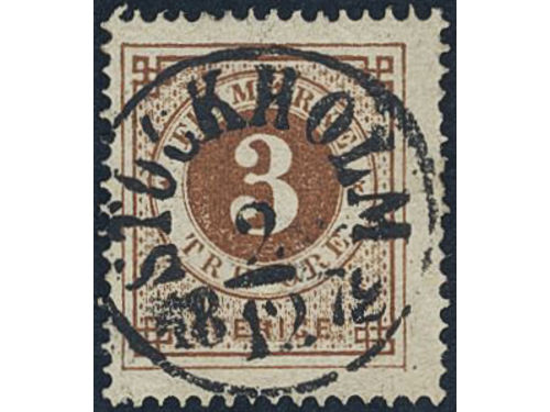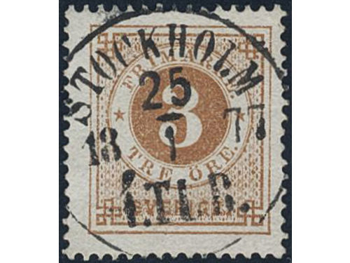 Sweden. Facit 17c used, 3 öre dark orange-brown on white paper. EXCELLENT cancellation STOCKHOLM 2.12.1872. Sweden. Facit 17c used, 3 öre dark orange-brown on white paper. EXCELLENT cancellation STOCKHOLM 2.12.1872. Visa mindre