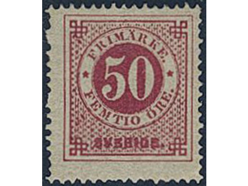 Sweden. Facit 26h ★, 50 öre dull carmine. Two short perfs. Opinion (shade) by O.P. SEK 9000 Sweden. Facit 26h ★, 50 öre dull carmine. Two short perfs. Opinion (shade) by O.P. SEK 9000 Visa mindre