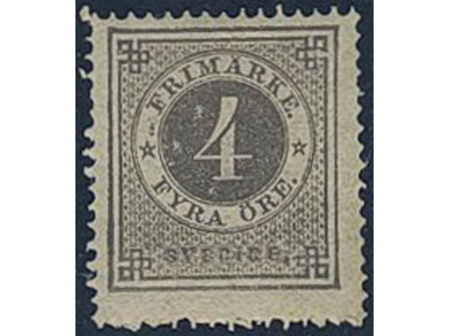 Sweden. Facit 18a ★, 4 öre dark grey. Rough perf. Notation on reverse. Opinion (shade) by O.P. SEK 4500 Sweden. Facit 18a ★, 4 öre dark grey. Rough perf. Notation on reverse. Opinion (shade) by O.P. SEK 4500 Visa mindre