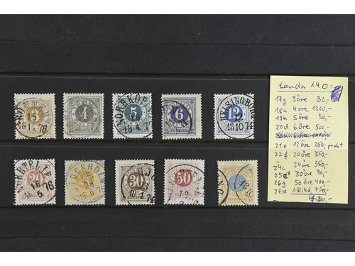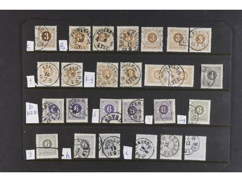 Sweden. Facit 17–27 used, Collection Circle type, perf 14 on three stock cards. 60 stamps in shades and some with nice c.. Läs mer Sweden. Facit 17–27 used, Collection Circle type, perf 14 on three stock cards. 60 stamps in shades and some with nice canc. The entire lot is presented at www.philea.se. Visa mindre