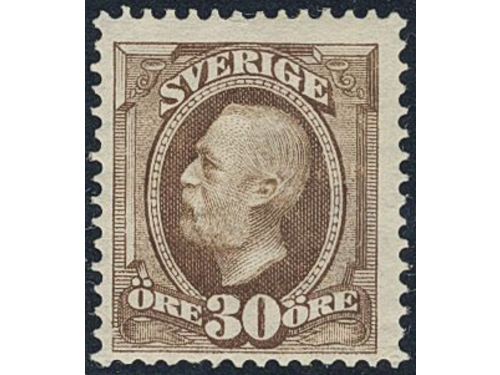 Sweden. Facit 58 ★★, 1891 Oscar II 30 öre brown. SEK 1600 Sweden. Facit 58 ★★, 1891 Oscar II 30 öre brown. SEK 1600 Visa mindre