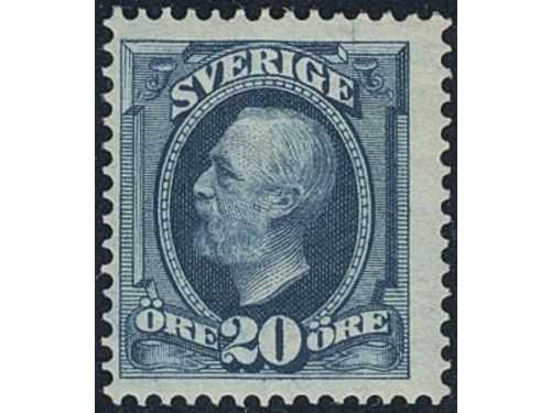 Sweden. Facit 56vm1 ★, 1891 Oscar II 20 öre blue, inverted wmk variety. Fair centering. SEK 2000 Sweden. Facit 56vm1 ★, 1891 Oscar II 20 öre blue, inverted wmk variety. Fair centering. SEK 2000 Visa mindre