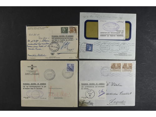 Sweden. Cover, 'Försändelsen återställes till avsändaren ...', labels used on covers seemingly sent towards Denmark, Fra.. Läs mer Sweden. Cover, 'Försändelsen återställes till avsändaren ...', labels used on covers seemingly sent towards Denmark, France, Holland and Croatia, respectively. (4). Visa mindre