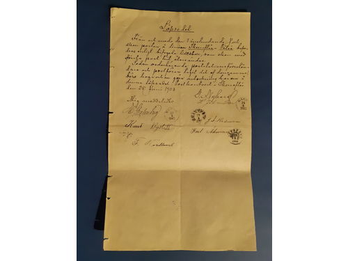 Sweden. Postal documentation, Inquest for the value mail sent to PKXP No 102 and 60 with enclosed list of all mail excha.. Läs mer Sweden. Postal documentation, Inquest for the value mail sent to PKXP No 102 and 60 with enclosed list of all mail exchanged, cancelled NEDERKALIX 14.10.1902. The file is joined together with seal N.D. POSTINSPEKTIONEN. Highly interesting. Visa mindre