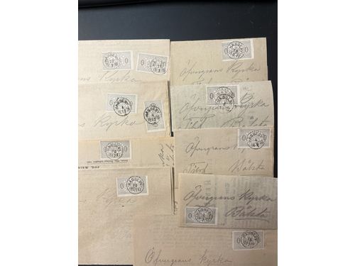 Sweden. Official Facit Tj2, 13A on cover, 4 öre grey, perf 14 and 13. Nine covers, canc. HÄGGBY 1882–1886. Mixed quality. Sweden. Official Facit Tj2, 13A on cover, 4 öre grey, perf 14 and 13. Nine covers, canc. HÄGGBY 1882–1886. Mixed quality. Visa mindre