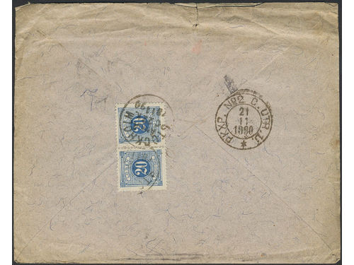Sweden. Postage due Facit L16 on cover, 2×20 öre (pair) as postage due on unpaid cover sent from France to STOCKHOLM ANK A 22.11.1890. Sweden. Postage due Facit L16 on cover, 2×20 öre (pair) as postage due on unpaid cover sent from France to STOCKHOLM ANK A 22.11.1890. Visa mindre