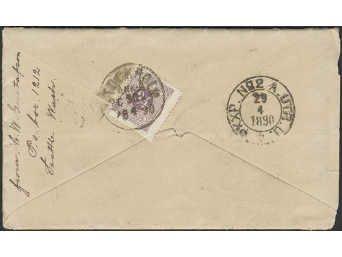 Sweden. Postage due Facit L17d on cover, 24 öre as postage due on insufficiently prepaid cover sent from USA to STOCKHOLM ANK A 30.4.1890. Sweden. Postage due Facit L17d on cover, 24 öre as postage due on insufficiently prepaid cover sent from USA to STOCKHOLM ANK A 30.4.1890. Visa mindre