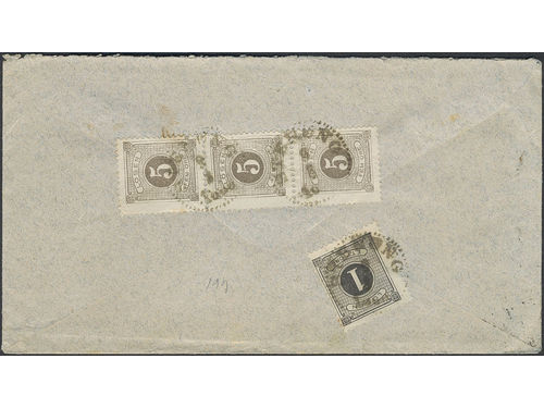 Sweden. Postage due Facit L11, 13 on cover, 1+3×5 öre as postage due on unpaid cover sent from PKXP No 17 B 5.8.1886 to STENUNG 9.8.1886. Sweden. Postage due Facit L11, 13 on cover, 1+3×5 öre as postage due on unpaid cover sent from PKXP No 17 B 5.8.1886 to STENUNG 9.8.1886. Visa mindre