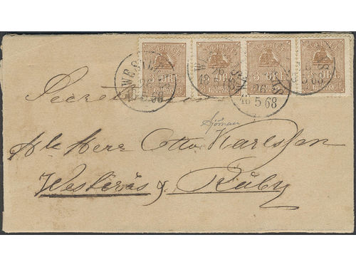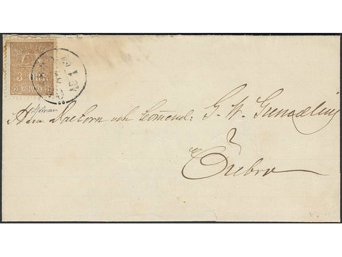Sweden. Facit 14A on cover, 3 öre brown, type I. Local cover cancelled ÖREBRO 27.1.1864. Certificate Sjöman Very fine (1969). SEK 6000 Sweden. Facit 14A on cover, 3 öre brown, type I. Local cover cancelled ÖREBRO 27.1.1864. Certificate Sjöman Very fine (1969). SEK 6000 Visa mindre