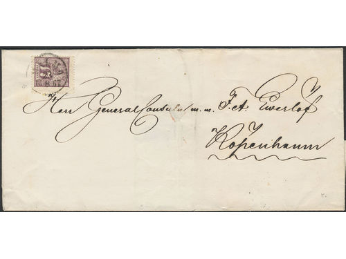 Sweden. Facit 15b2 on cover, 17 öre reddish-bluish lilac, perforation of 1865. Cover sent from MALMÖ 23.8.1867 to Denmar.. Läs mer Sweden. Facit 15b2 on cover, 17 öre reddish-bluish lilac, perforation of 1865. Cover sent from MALMÖ 23.8.1867 to Denmark with arrival pmk KIØBENHAVN 24.8. SEK 5000 Visa mindre