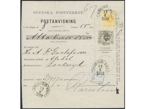 Sweden. Facit 34, 29 on cover, 4+24 öre on money order sent from GÖTEBORG-FILIAL 12.6.1888 to BACKERYD 15.6.1888. Sweden. Facit 34, 29 on cover, 4+24 öre on money order sent from GÖTEBORG-FILIAL 12.6.1888 to BACKERYD 15.6.1888. Visa mindre