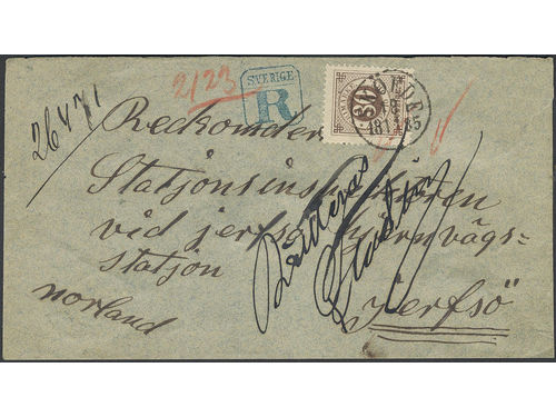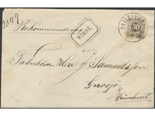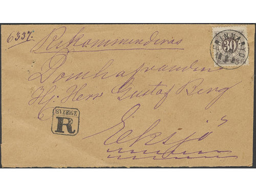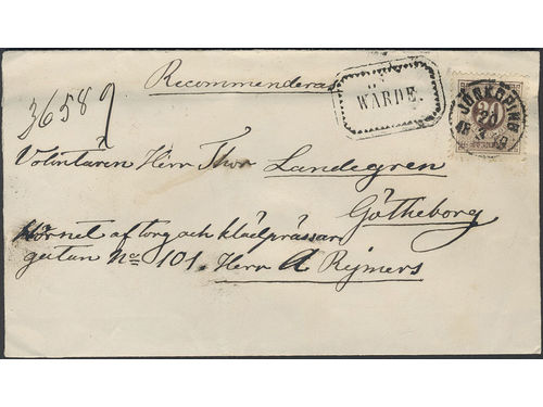 Sweden. Facit 35 on cover, 30 öre on very beautiful registered cover sent from SKILLINGARYD 21.6.1878 via JÖNKÖPING 21.6.. Läs mer Sweden. Facit 35 on cover, 30 öre on very beautiful registered cover sent from SKILLINGARYD 21.6.1878 via JÖNKÖPING 21.6.1878 to Gnosjö. Superb–EXCELLENT. Visa mindre