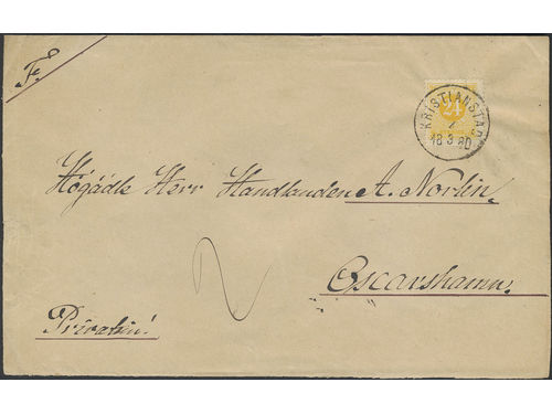 Sweden. Facit 34 on cover, 24 öre very beautiful double rate cover sent from KRISTIANSTAD 4.3.1880 to Oskarshamn. Sweden. Facit 34 on cover, 24 öre very beautiful double rate cover sent from KRISTIANSTAD 4.3.1880 to Oskarshamn. Visa mindre
