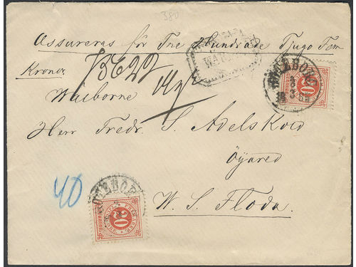 Sweden. Facit 33 on cover, 2×20 öre on insured cover sent from GÖTEBORG 3.3.1885 to Floda. Sweden. Facit 33 on cover, 2×20 öre on insured cover sent from GÖTEBORG 3.3.1885 to Floda. Visa mindre